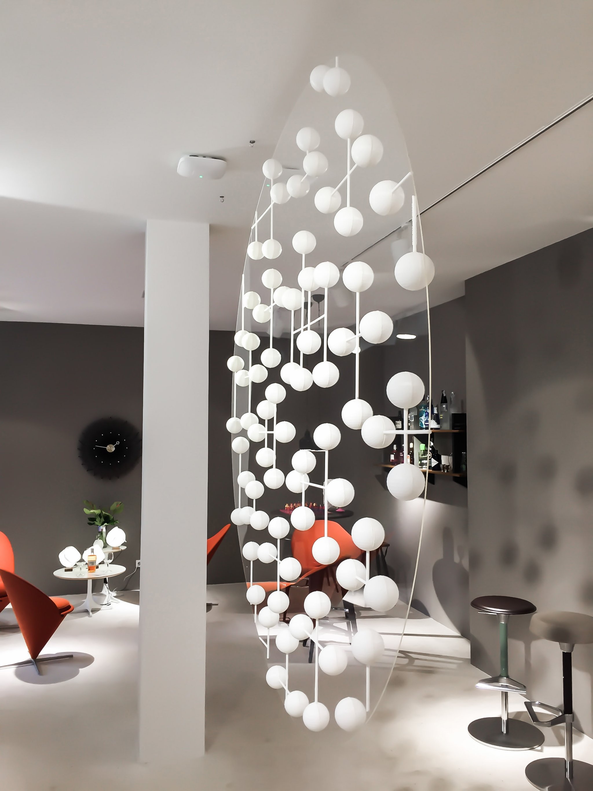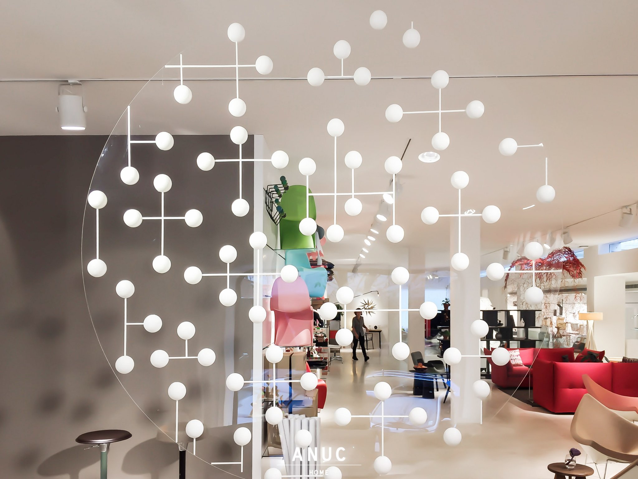 Instalación navideña para Vitra basada en una pieza central 3D inspirada en el universo gráfico de los Eames. Diseño etéreo, lúdico y sofisticado.